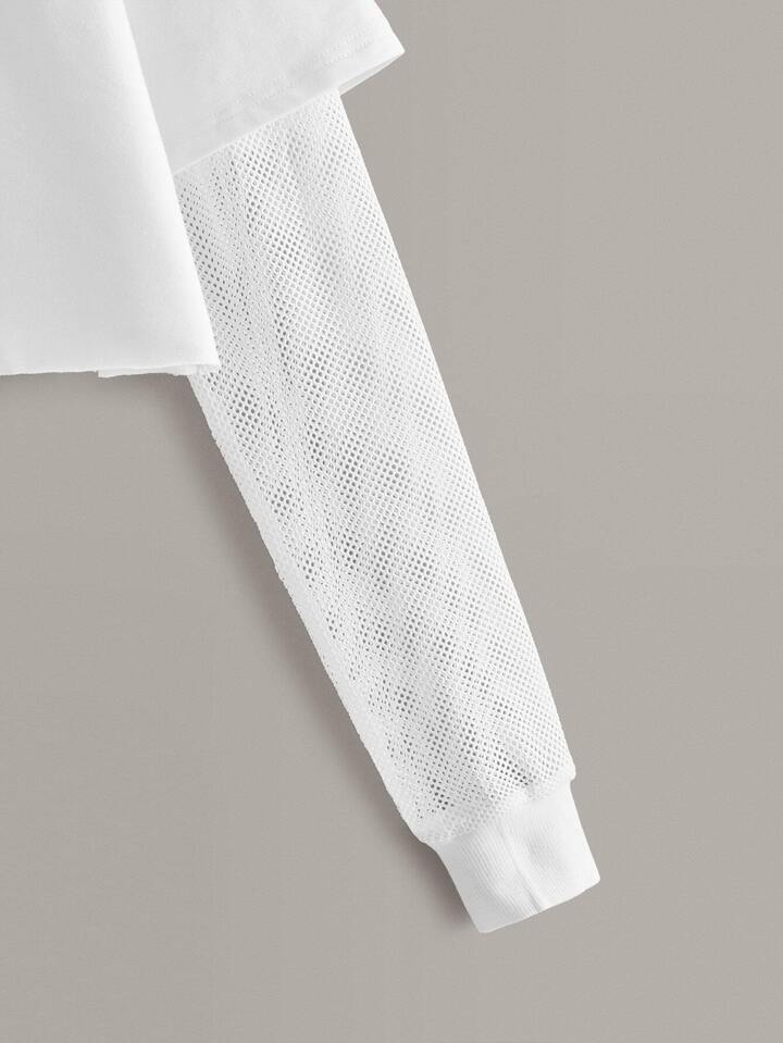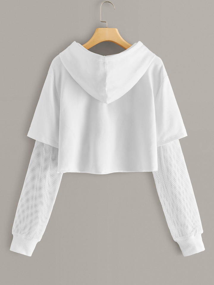 Contrast Fishnet Sleeve Letter Graphic Hoodie