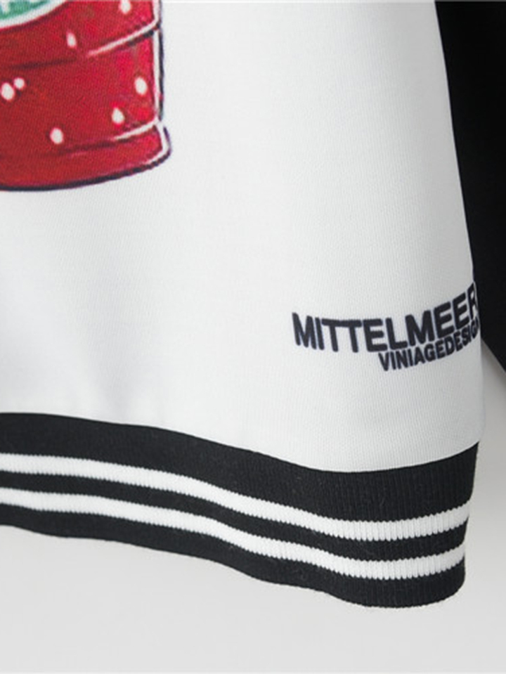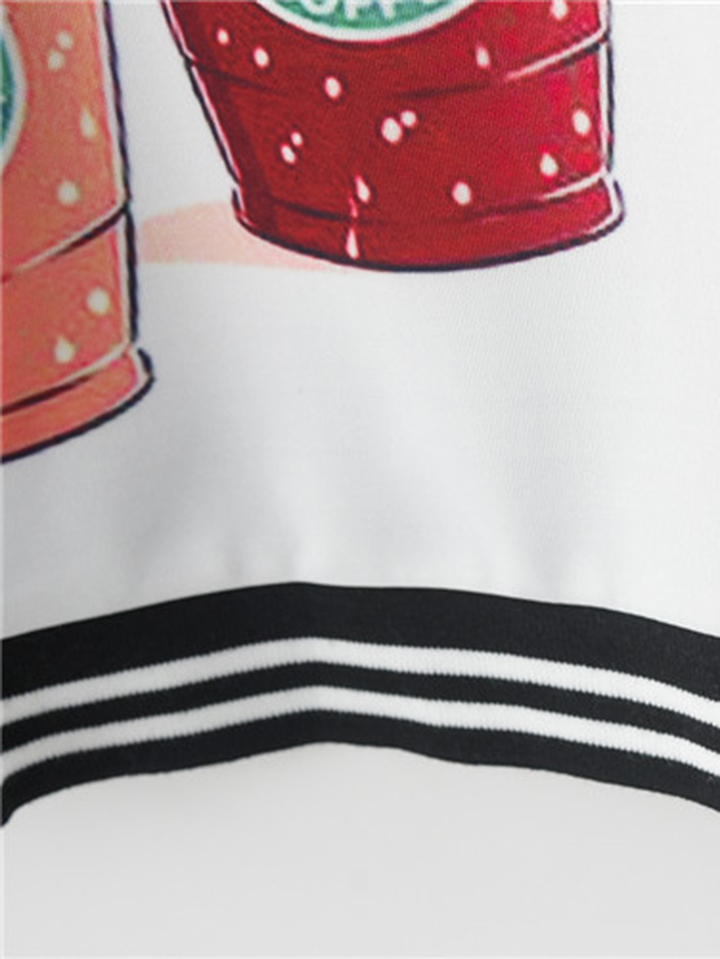 Contrast Striped Letter And Cartoon Graphic Baseball Jacket