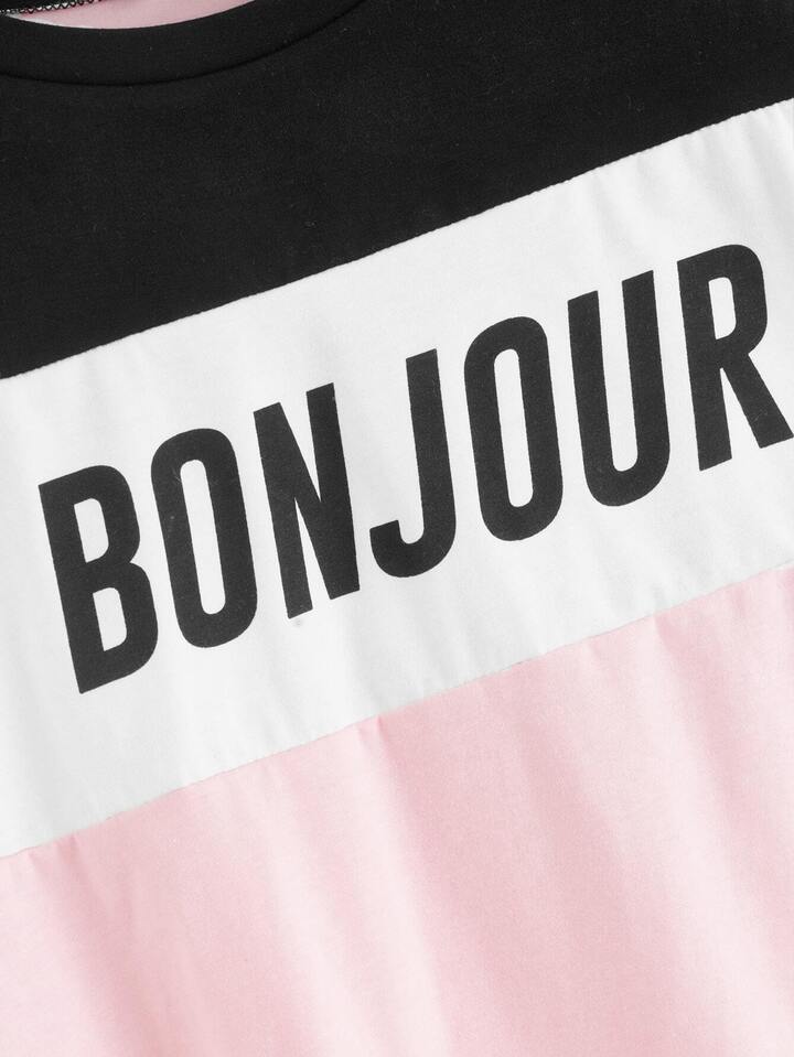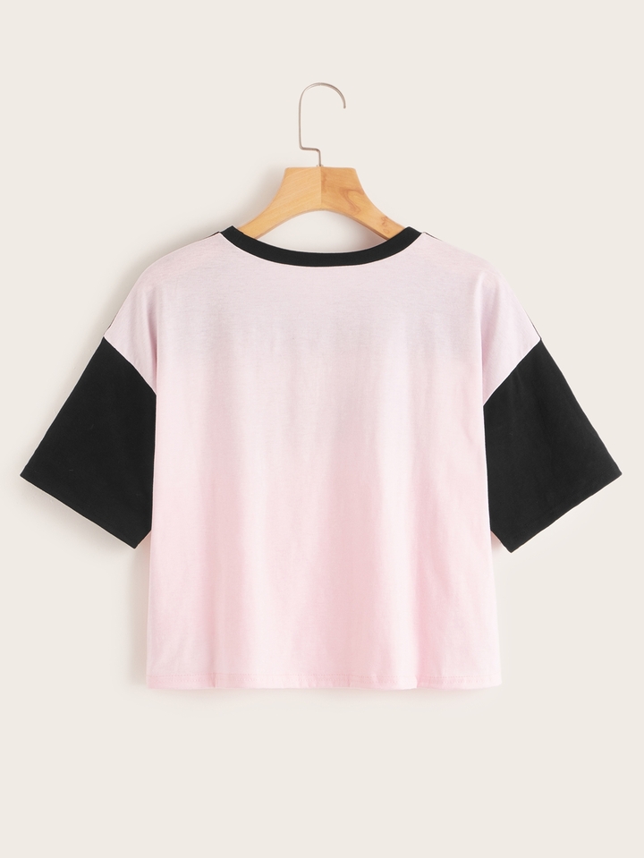 Cut And Sew Letter Print Tee