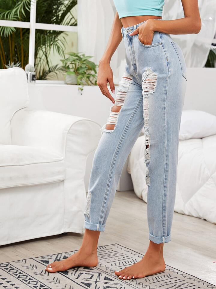 Bleach Wash High-Rise Destroyed Ripped Detail Jeans