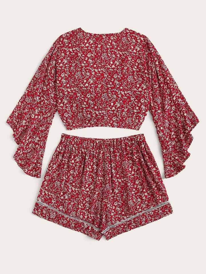 Ditsy Floral Tie Front Top & Shorts
