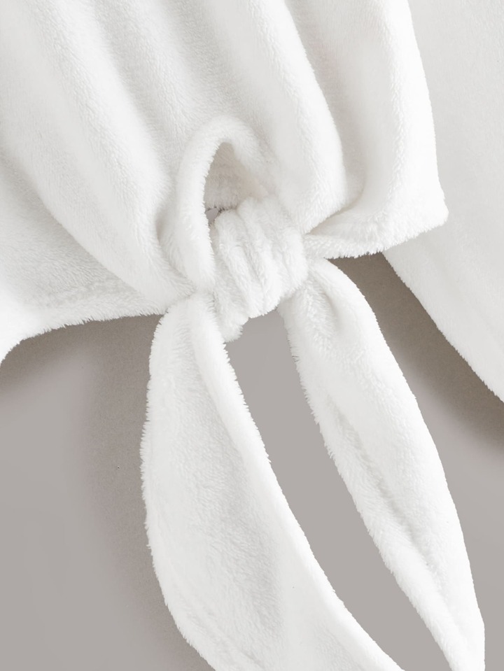 Drop Shoulder Knot Hem Teddy Sweatshirt