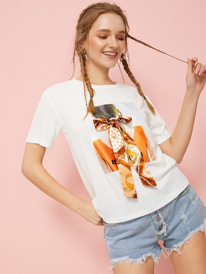 Figure Print Tie Front Tee
