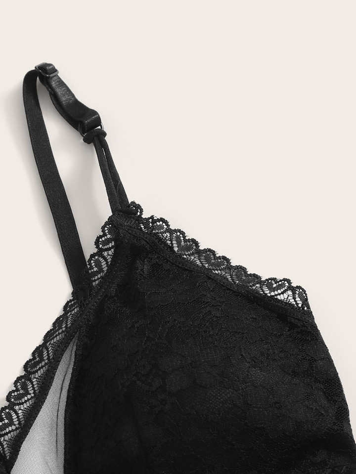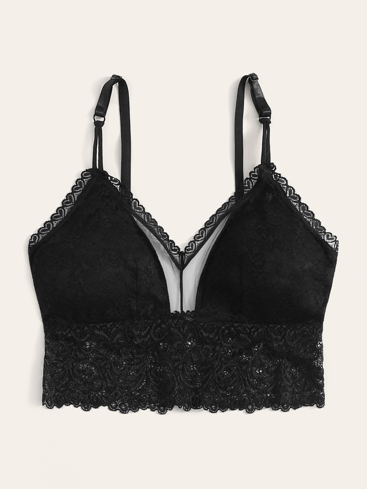 Floral Lace Contrast Mesh Lingerie Bralette