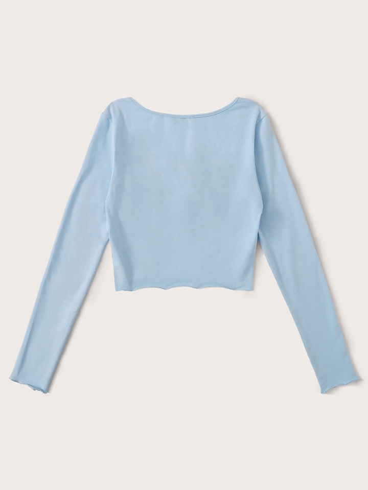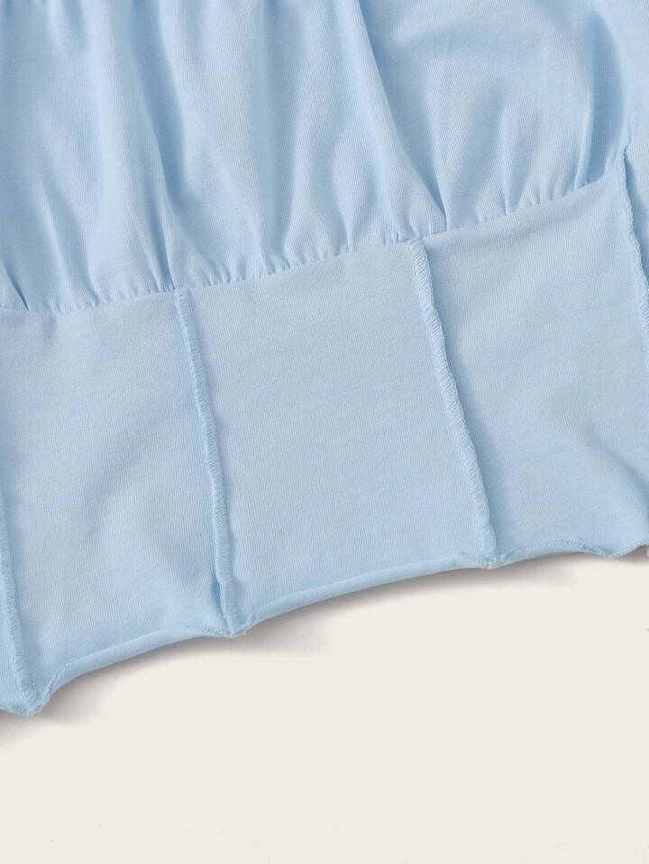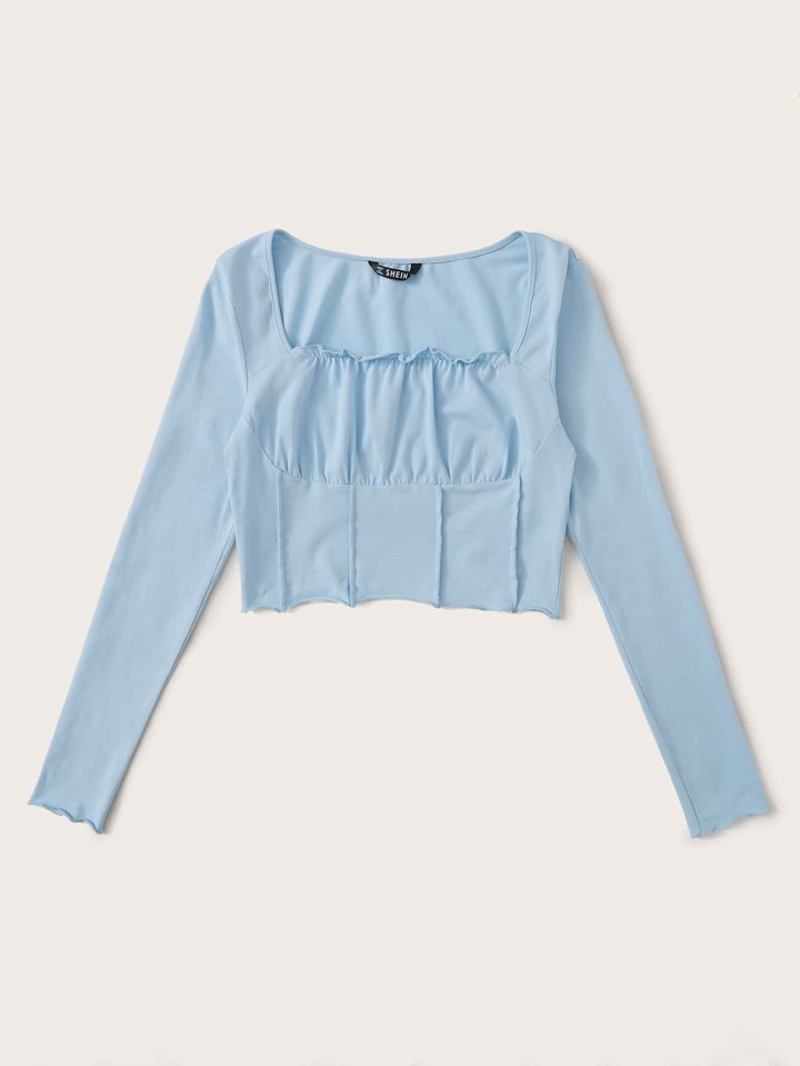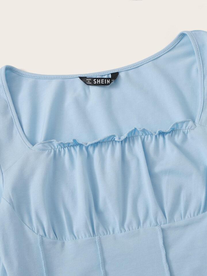 Frill Trim Ruched Bust Fitted Crop Tee