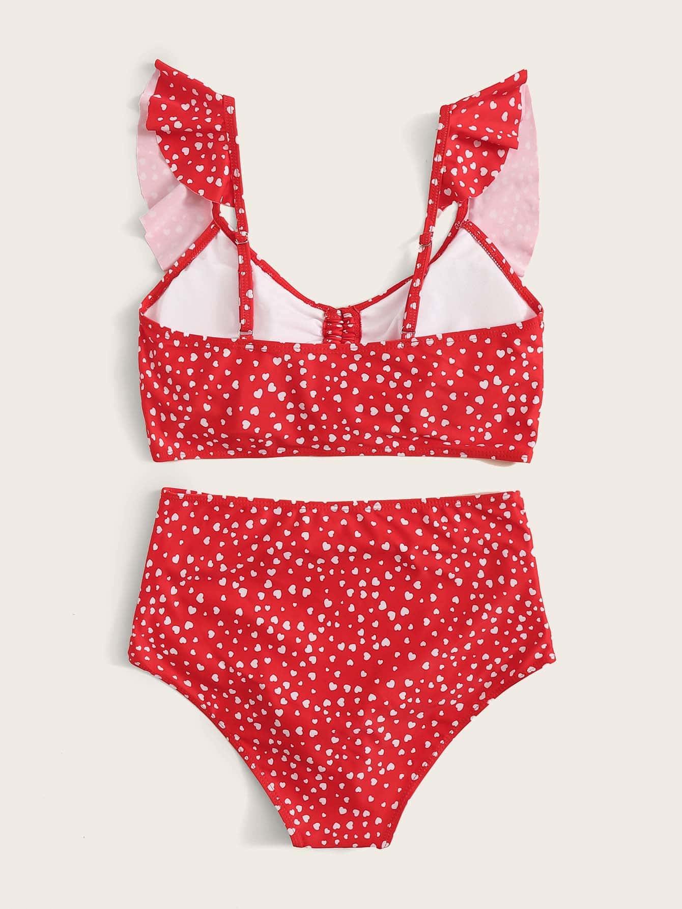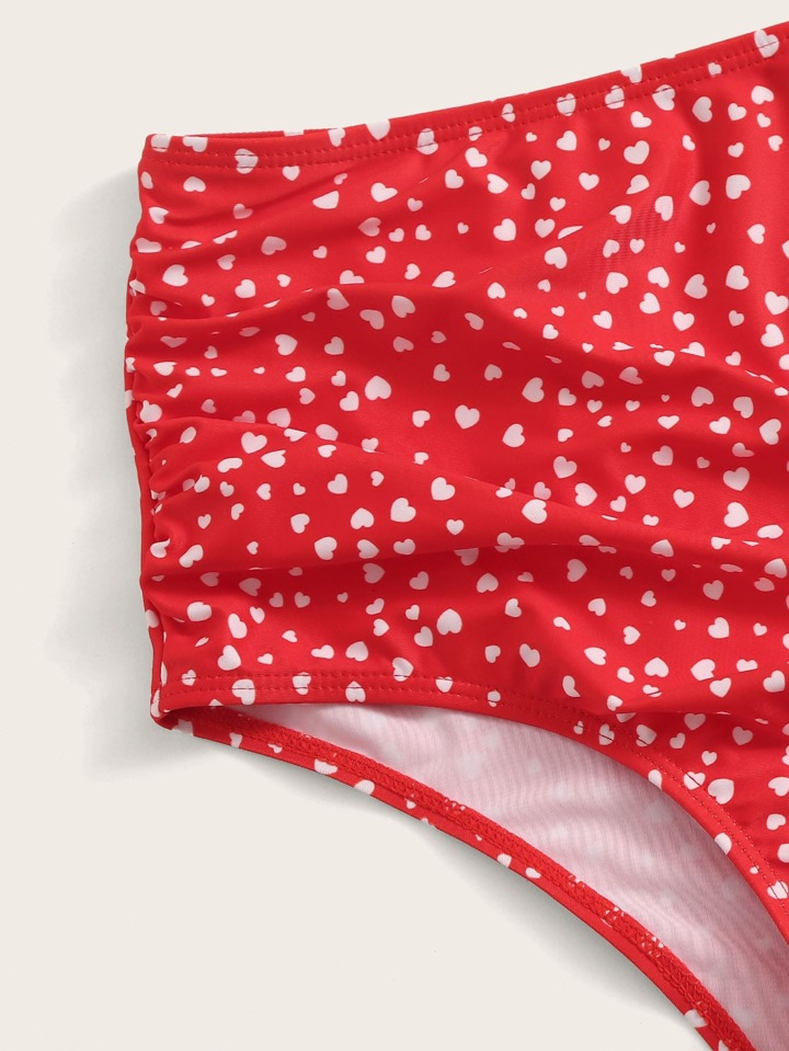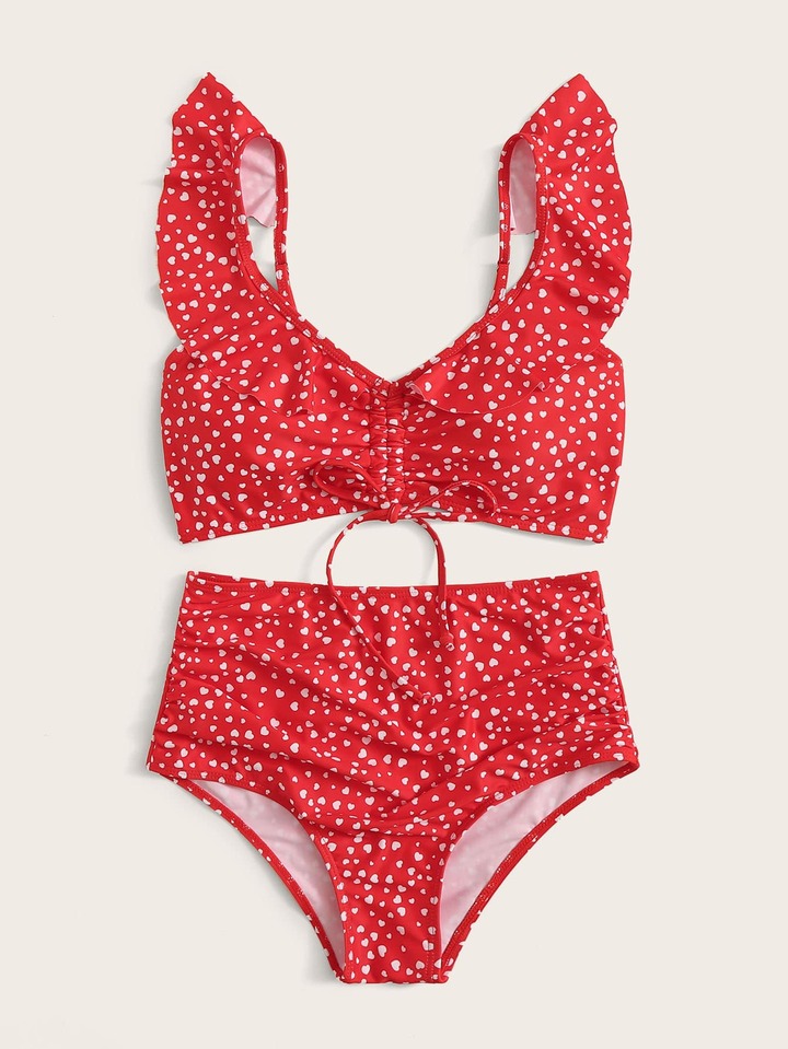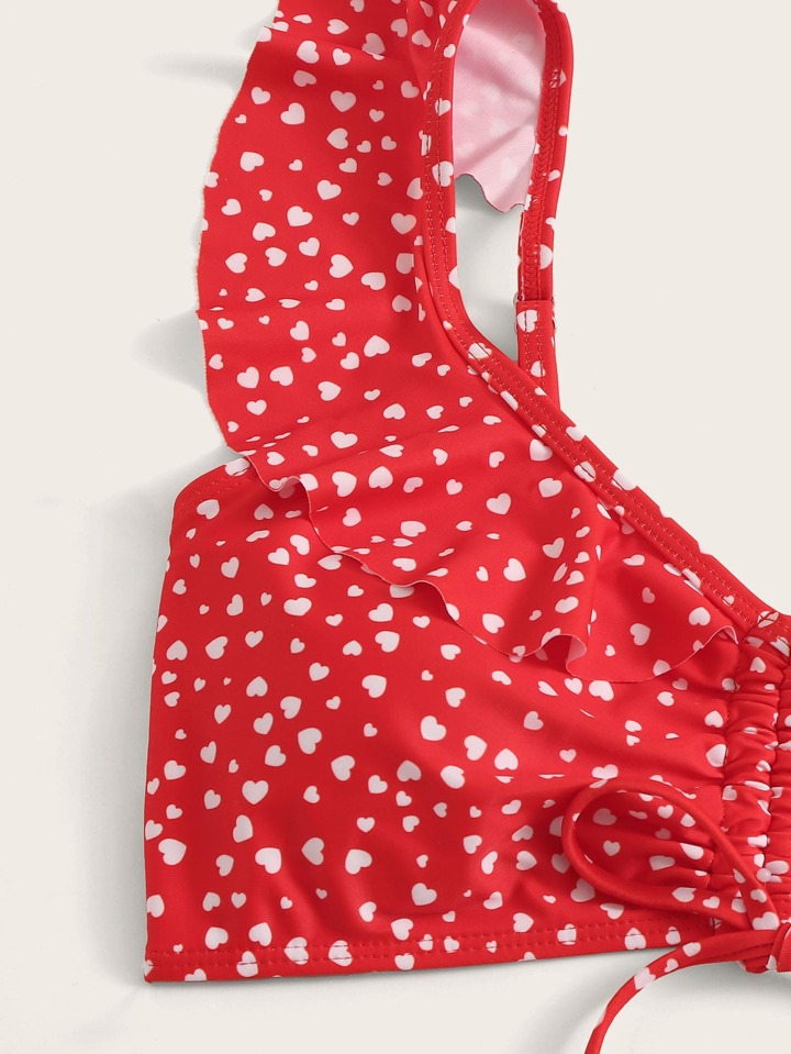 Heart Print Ruffle Trim Bikini Set