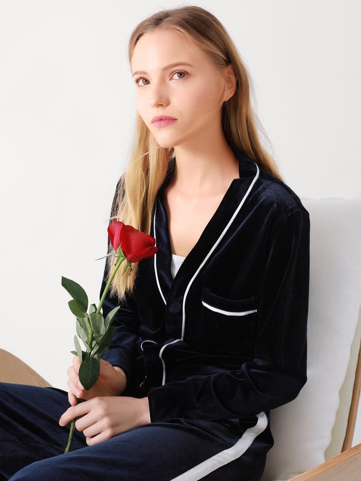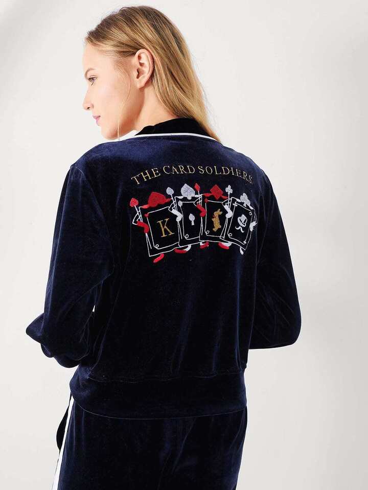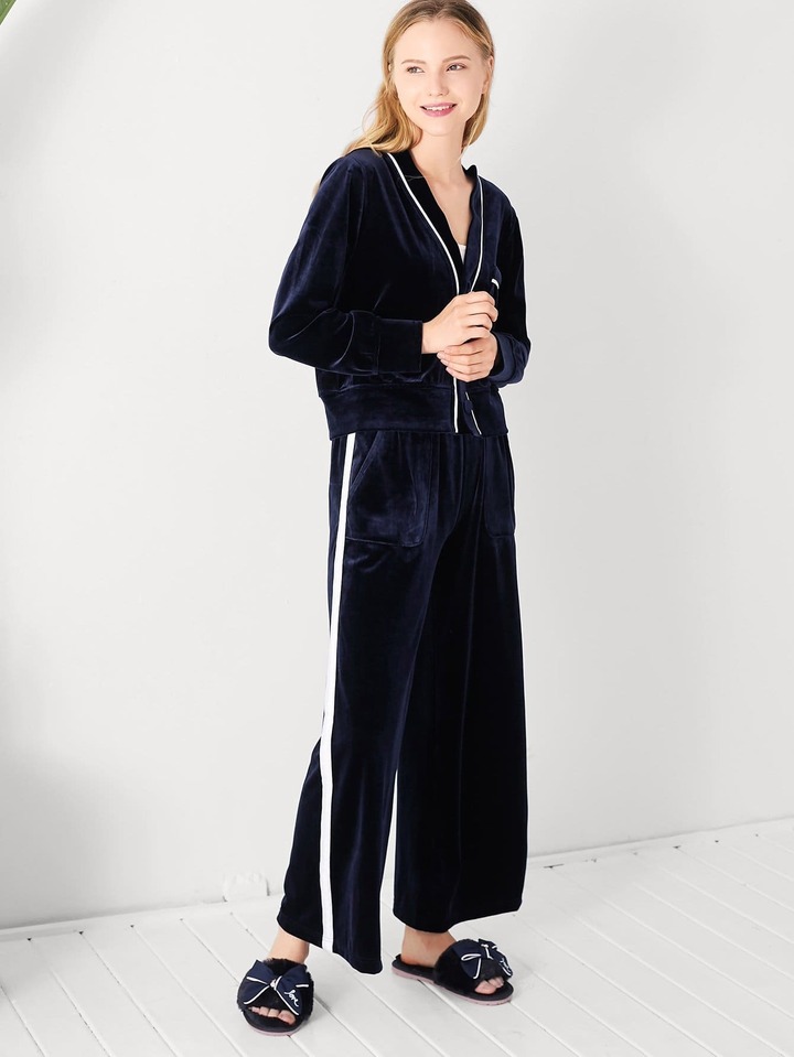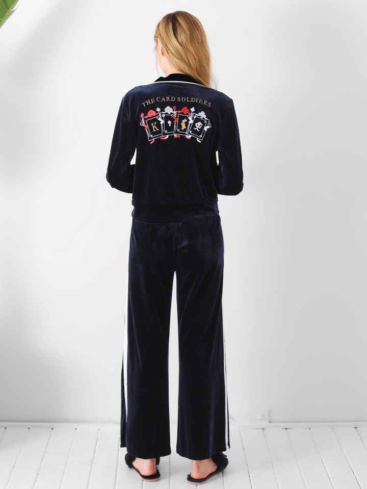 Letter Embroidered Back Velvet Pajama Set