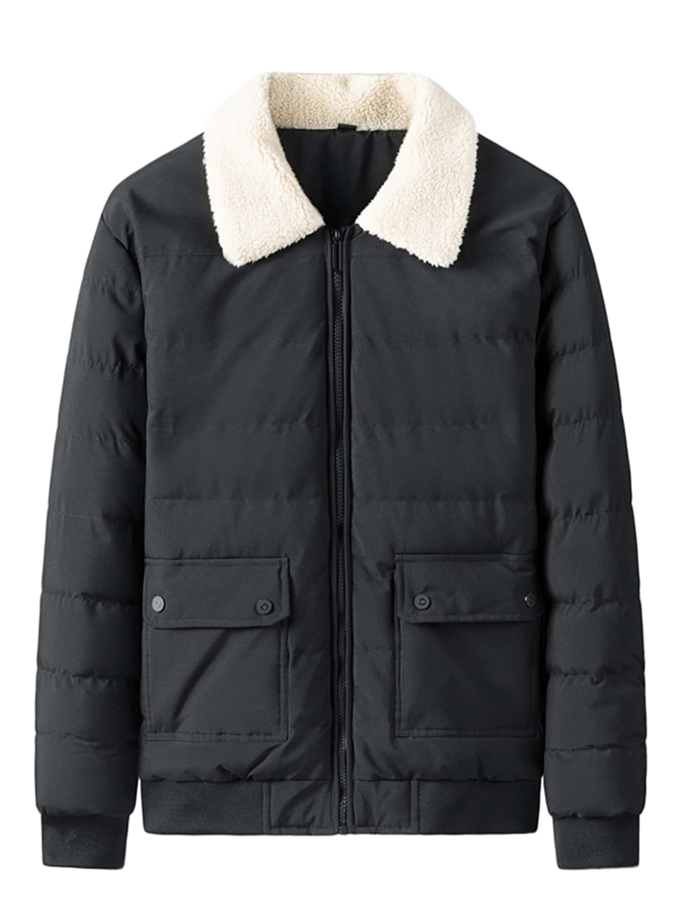 Guys Contrast Teddy Collar Zip Up Padded Jacket