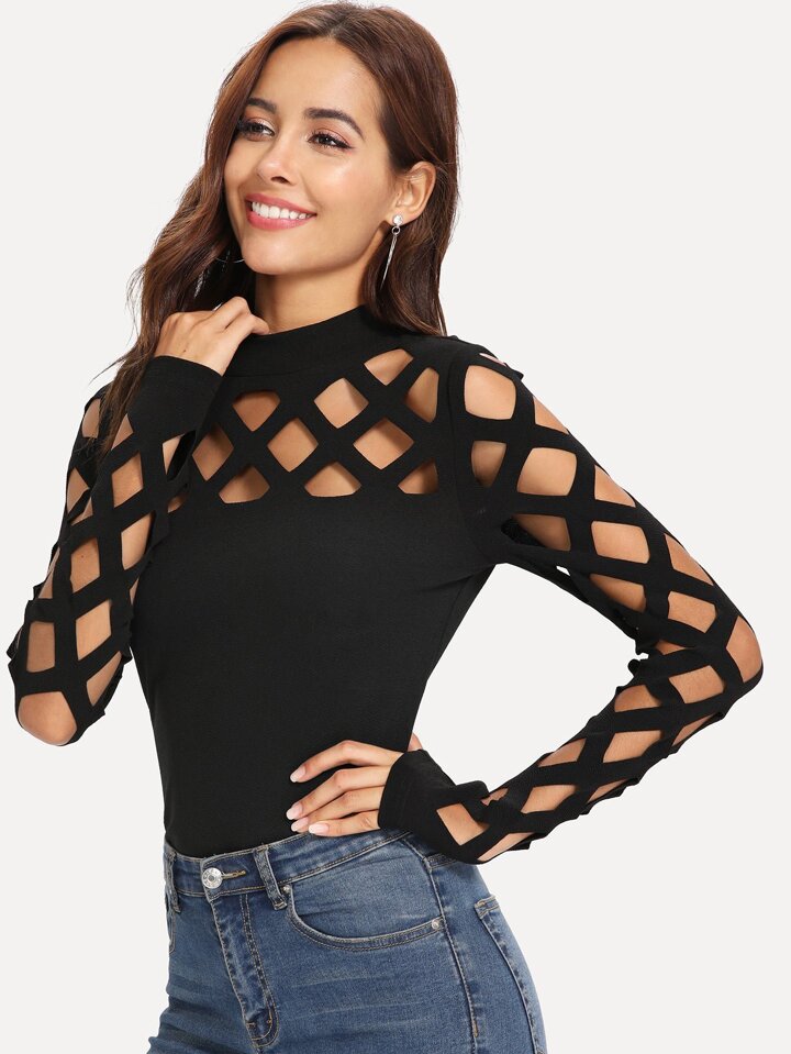 Mock Neck Cage Yoke & Sleeve Top