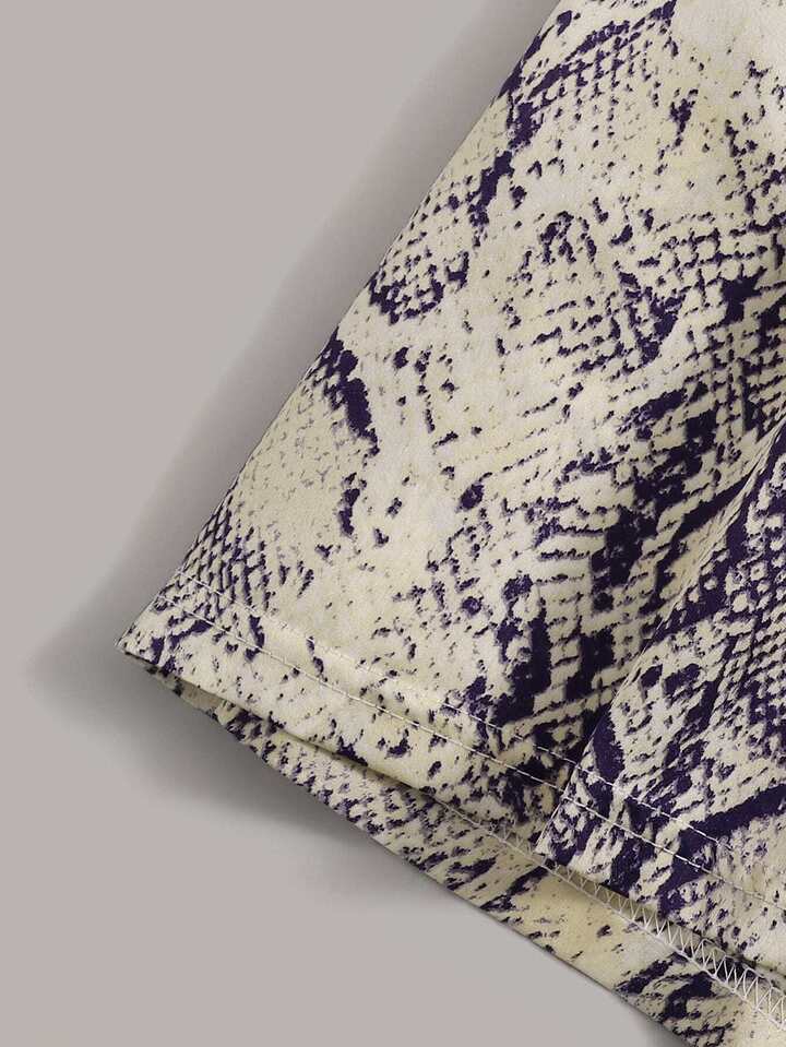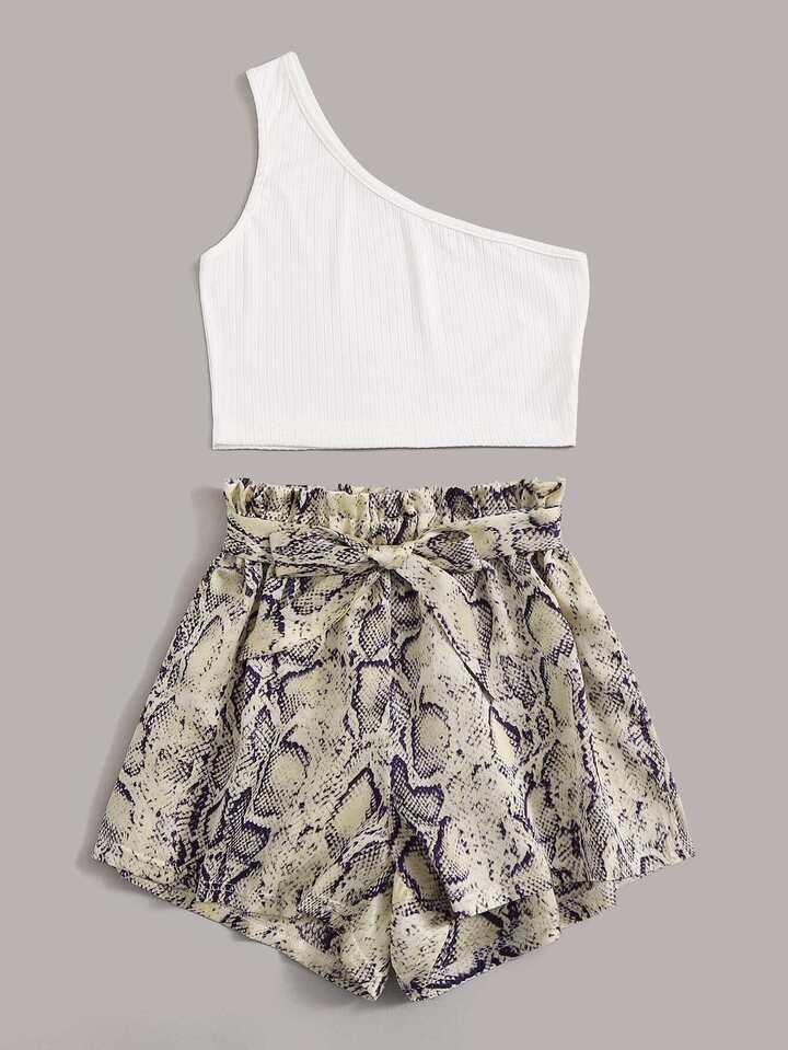 One Shoulder Top & Snakeskin Print Belted Shorts