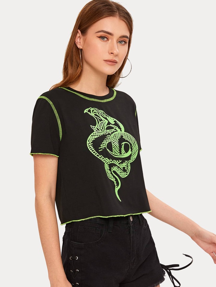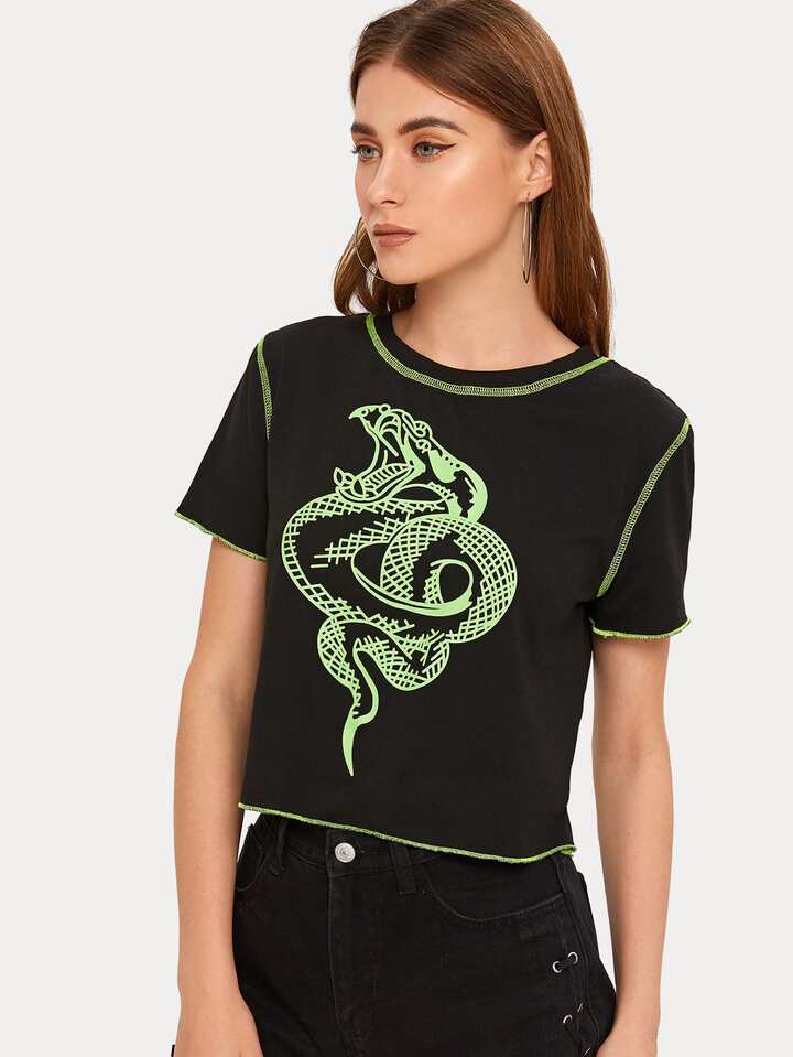 Snake Graphic Topstitch Tee