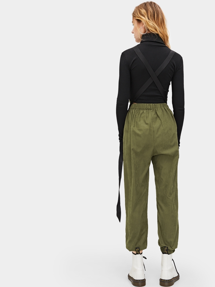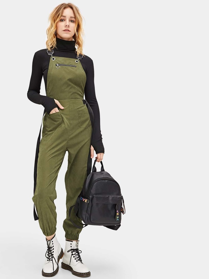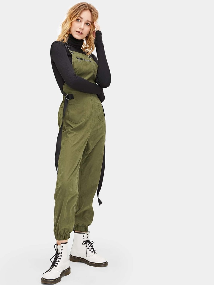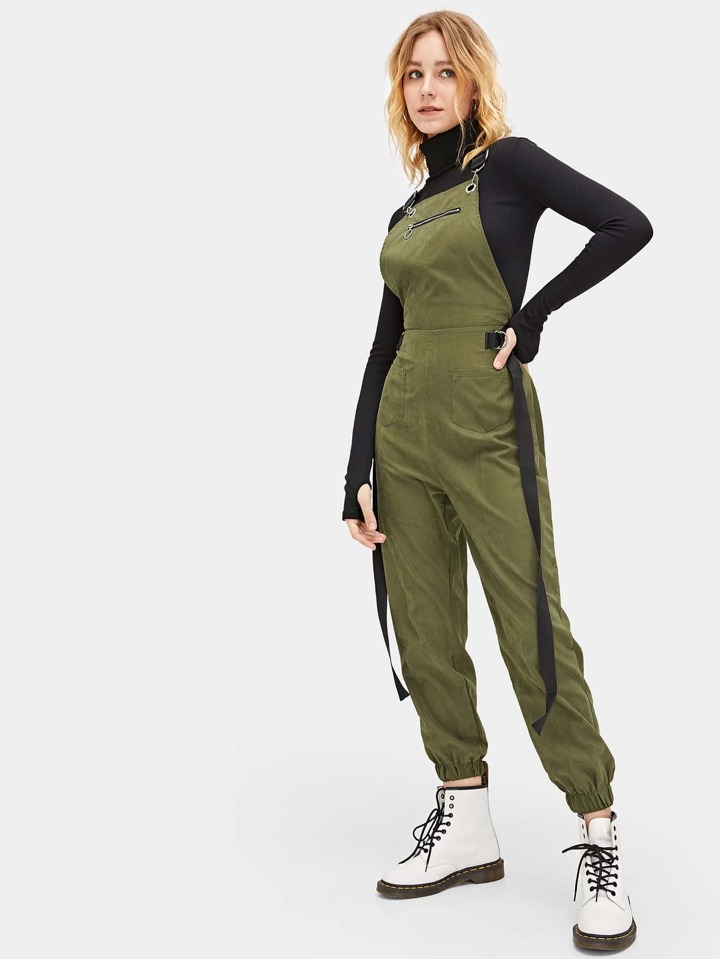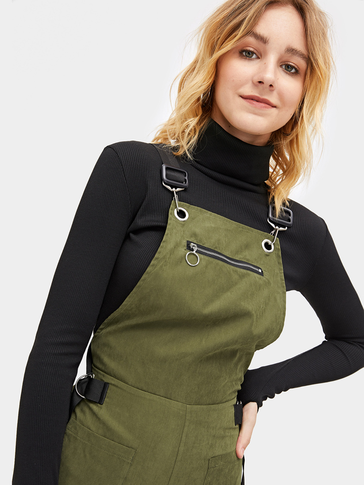 Tape Panel Zip Detail Dual Pocket Pinafore Jumpsuit