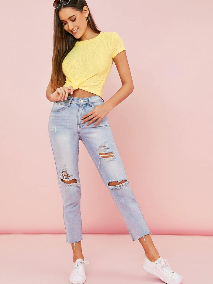 Waffle Knit Knotted Self-Tie Tee